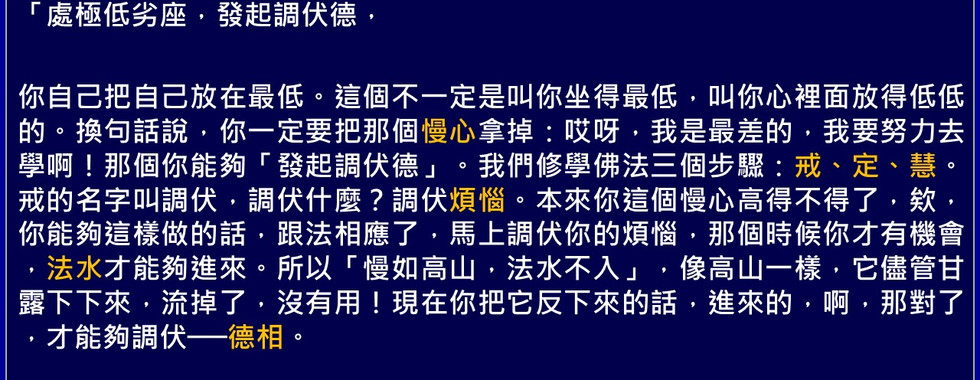 處極低劣處:自己身體要處於極低劣的位置,為了滅除驕慢及要恭敬說法法師