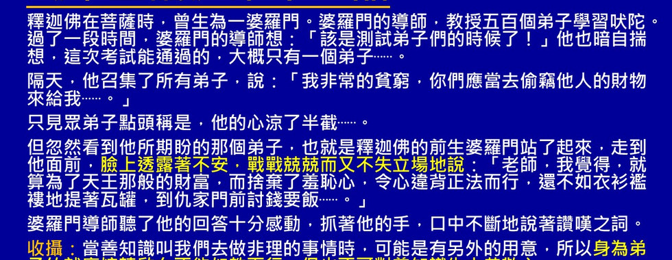 第三者謂於教授遵行無違.此是主要。本生論云.「報恩供養者.謂依教奉行。」設若須隨師教行者.若所依師引入非理及令作違三律儀事.如何行耶。毘奈耶經於此說云.「若說非法.應當遮止。」寶雲亦云.「於其善法隨順而行.於不善法應不順行。」故於所教.應不依行。不行非理者.本生論第十二品亦有明證。然亦不應以此諸理.遂於師所.不敬輕訾而毀謗等。如尊重五十頌云.「若以理不能.啟白不能理。」應善辭謝而不隨轉。如是親近時.亦如莊嚴經論云.「為受法分*1具功德.親近知識非為財。」是須受行正法之分。 *1. 法分:上師說法就分給了自己一分法,自己要去修持正法的受用 第三、依教修行。就是依師長的教導,遵照奉行沒有違背,這是最主要的。《本生論》說:「要報答善知識的恩德,最殊勝的供養,就是依教奉行。」如果師長的教授不如法,或與三律儀戒(律儀戒、攝善法戒、饒益有情戒)相違時,該怎麼辦呢?《毘奈耶經》說:「若師長教導不如法,就不要照著做。」 《寶雲經》也說:「如果上師教導的是善法,我們就應該依教奉行,若是不善法,則不應隨順去做。」所以,如果師長所教導的並不如法,就不應該照著去做。有關不如理如法的教導,就不應該隨行的道理,在本生論第十二品中也有明證。 雖然如此,但是也不應該以這些理由,對於這位師長因此有不恭敬、輕視而毁謗等行為。如《尊重五十頌》說:「假若師長交辦的事不合理,我們不能夠遵從,應向師長說明不能做的理由。」並應善巧婉轉的辭謝,而不要盲目隨錯誤而轉。親近師長時,就像《莊嚴經論》所說:「親近善知識,是為了獲得正法、增長功德,不是為了財或貪圖享受。」所以,在善知識跟前,應該以接受佛法的教導為最重要。