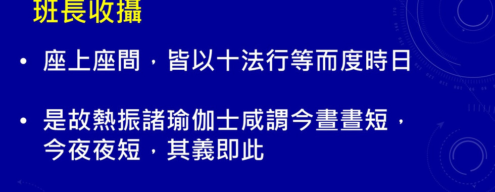 四家合註入門段落 | 第1冊 P219L10 ~ P220LL1 接下來有……造成的過失。 接下來有語王尊者的箋註,「座上座間,皆以十法行等而度時日」,這就是熱振寺噶當派行者修持的方法,無論座上修還是座下修,都是以十種法行而度過任何時間。「是故熱振諸瑜伽士咸謂今晝晝短,今夜夜短,其義即此」。「熱振」是噶當派一座寺院的名字。這是在描述修行的狀態,學習的時候感到白天很短、晚上也很短,代表一種身語意三碎為微塵的精進。身語意三碎為微塵的精進就是這樣,熱振寺的瑜伽修士們,感到白天時光短促,晚上也一樣短促,因為全然精進地學習。不論正式座上修抑或下座的時候,都精勤於十種法行。這段是對上文的解釋。